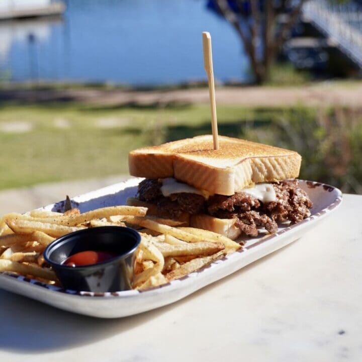 Wagyu Hamburger patty, Swiss cheese, Caramelized onions on Texas toast