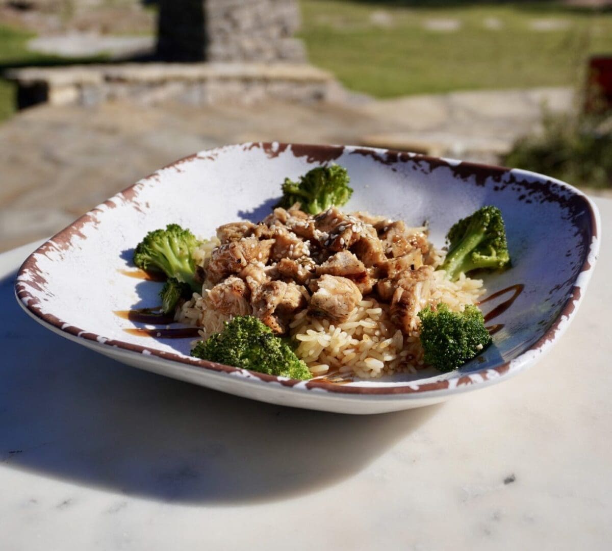Choose Chicken or Salmon, Served with Broccoli and Rice topped with teriyaki sauce